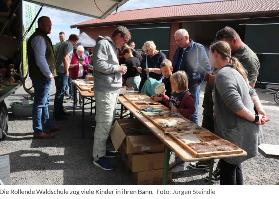 Der etwa 250 Mitglieder starke Hegering lud Jung und Alt zu einem abwechslungsreichen Info- und Aktionstag ein, der jede Menge Überraschungen bereithielt. So konnten sich die Gäste beim Bogenschießen, dem Nistkastenbau oder im sogenannten Schießkino –einer virtuellen Entenjagd – ausprobieren. Die große Spielscheune des Hofes, traditionelles Stockbrotbacken und die Rollende Waldschule waren weitere Anziehungspunkte für die vielen Kinder.